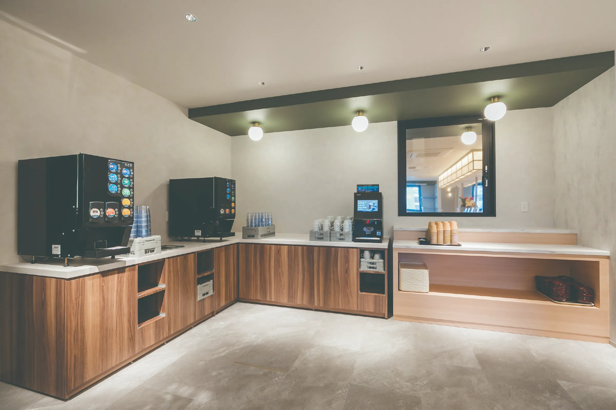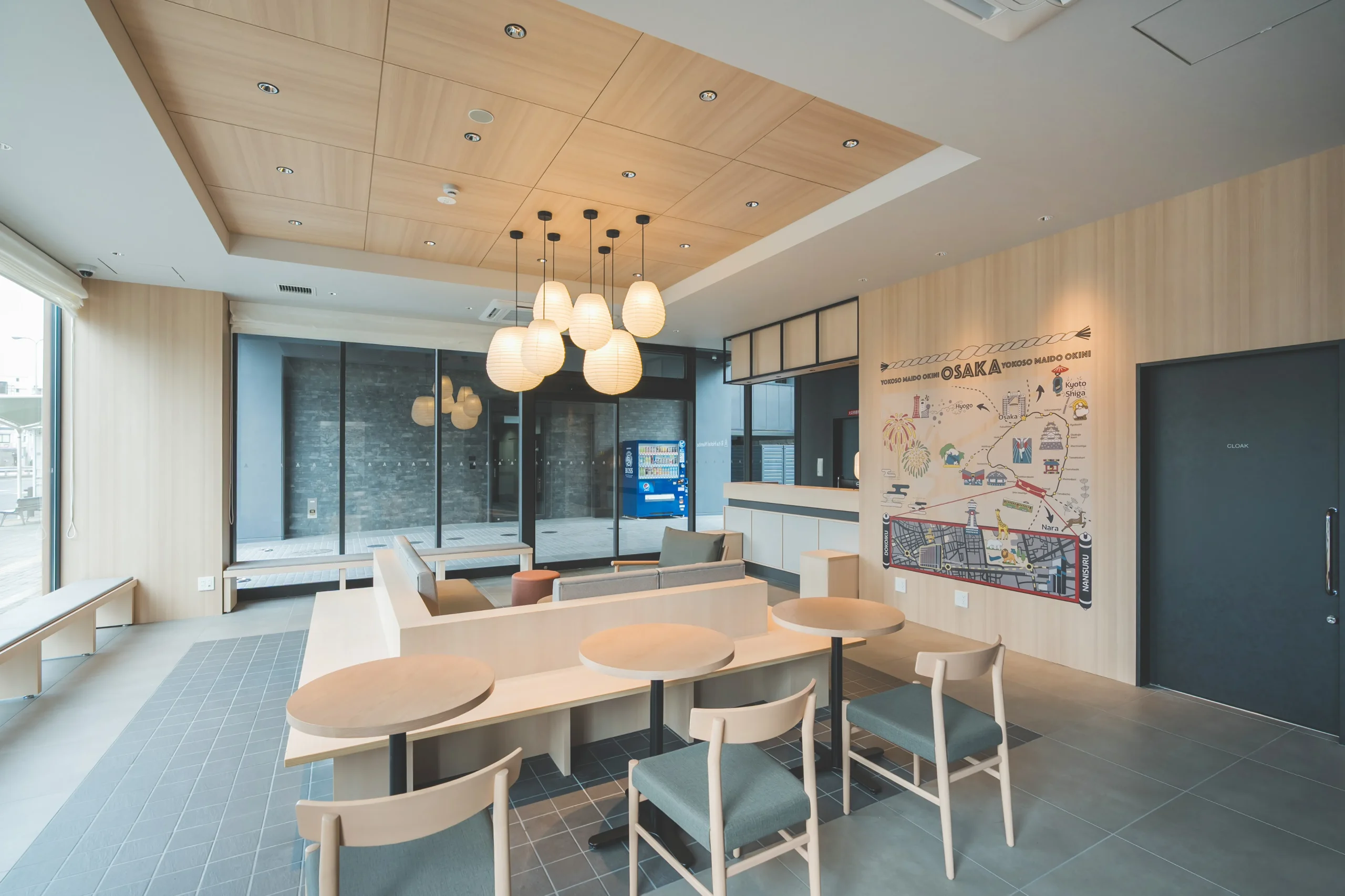 館内には、和モダンの趣をさりげなく映した空間が広がります。過度に主張しない意匠と落ち着いた色調が、移動の合間にも心をゆるめ、滞在全体に穏やかな余韻をもたらします。