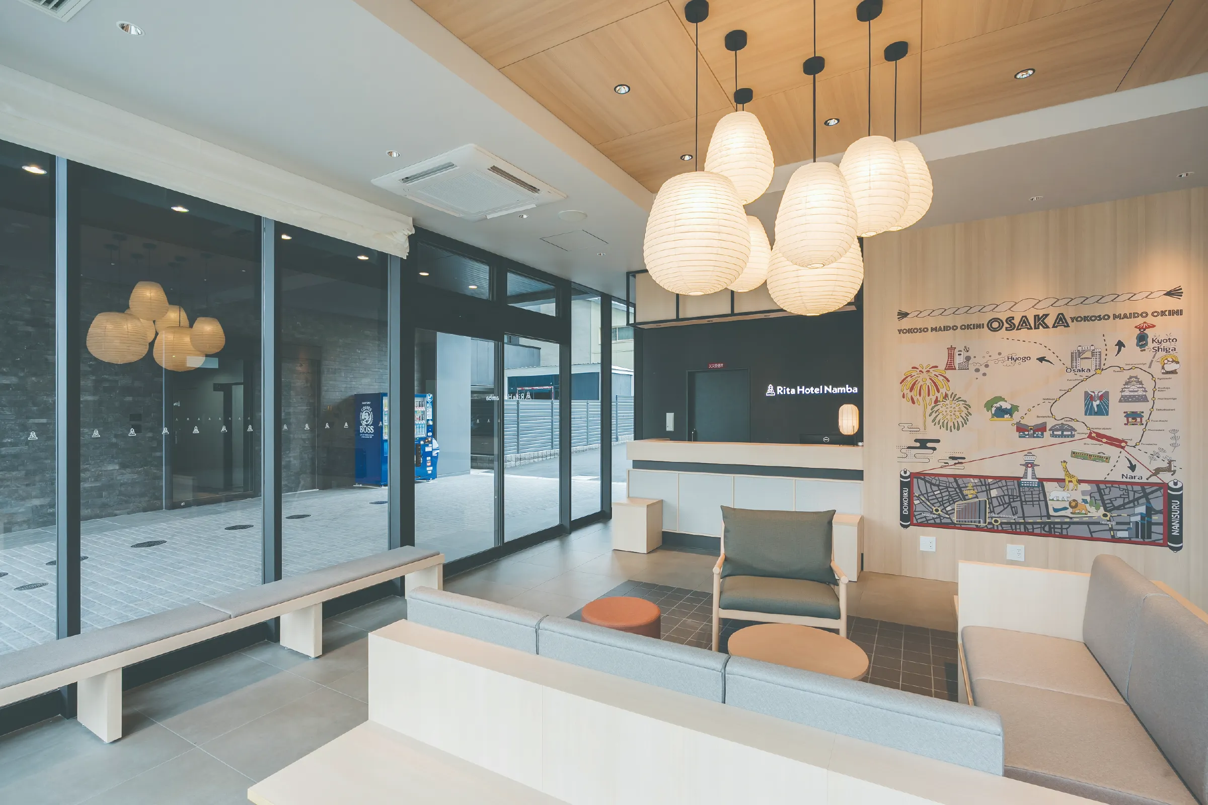 Rita Hotel Nambaは、にぎわいのすぐそばにありながら、ひと息つける滞在を整えています。チェックイン後は身軽に大阪の街へ。道頓堀や黒門市場、心斎橋まで、気分のままに歩いてみてください。